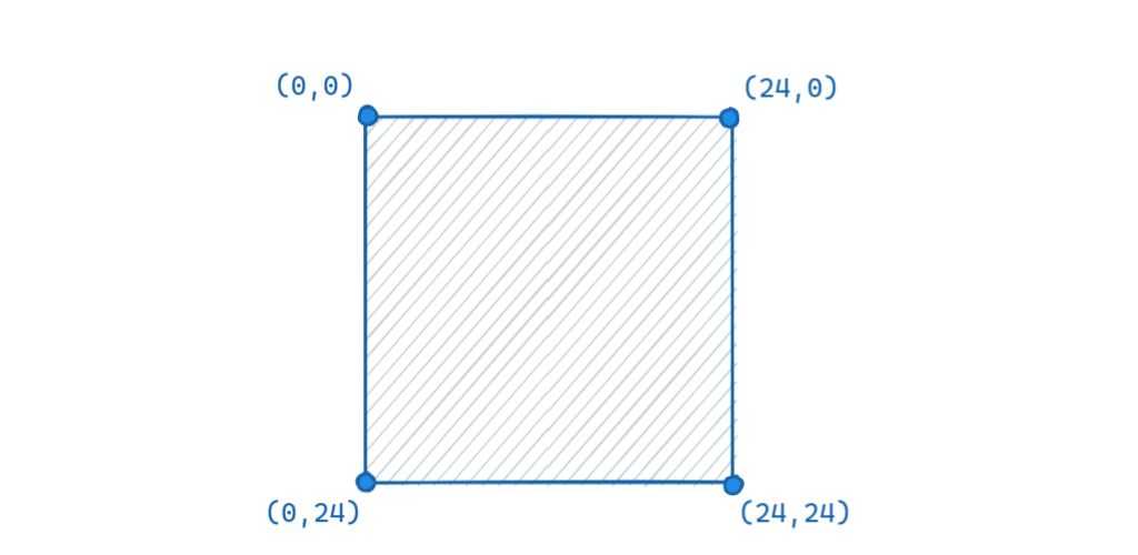 The last two numbers control the size (horizontal and vertical, respectively) of this coordinate system, before any scaling is done. Larger numbers lead to a larger viewport and more space to work with, while smaller numbers lead to a smaller viewport and less space to work with. In the examples above, the viewport size is declared to be , so our coordinates range from (top-left corner) to (bottom-right corner):