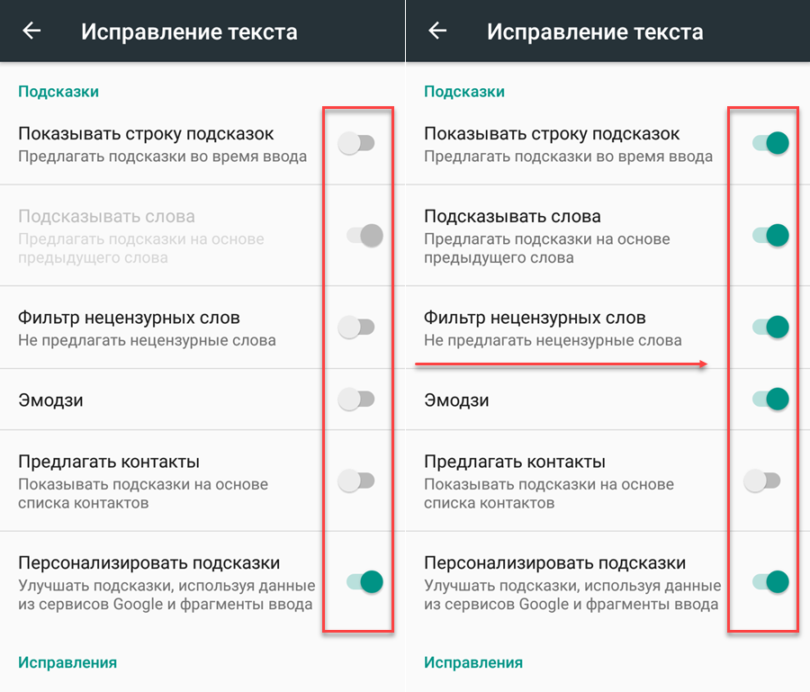 В других телефонах алгоритм может немного отличаться. К примеру, в модели Explay Flesh раздел называется «Автоисправление», в котором нужно деактивировать строчку «Автозамена» или перевести ползунок в положение «Выкл». На некоторых моделях с android в разделе «Язык и ввод» при выборе необходимой клавиатуры появится пункт «Показать варианты исправлений». Нажмите на него, выберите режим «скрывать всегда» – тогда получится отключить т9.