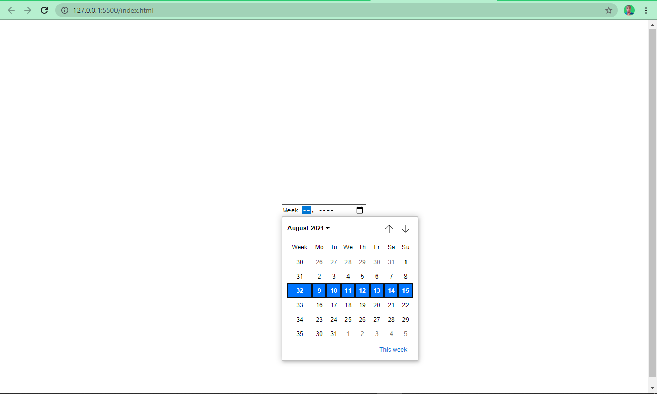 The input type of week lets a user select a specific week.