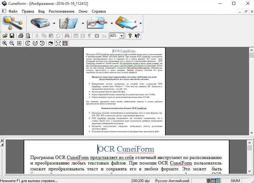 - Программа работает в режиме распознавания текста и в режиме сканирования в зависимости от задач пользователя;