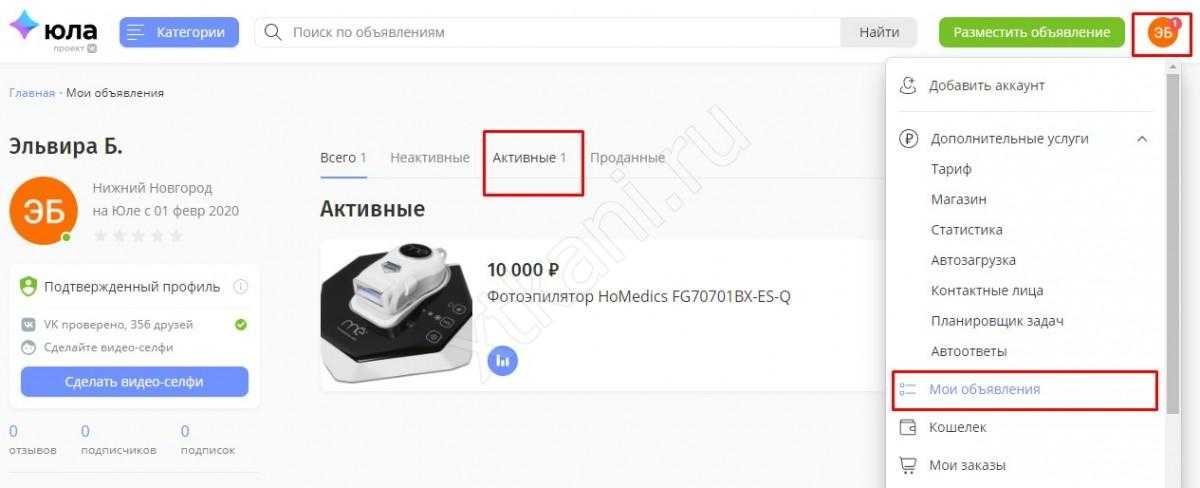 На мобильнике нужно зайти в приложение «Юла» и далее: