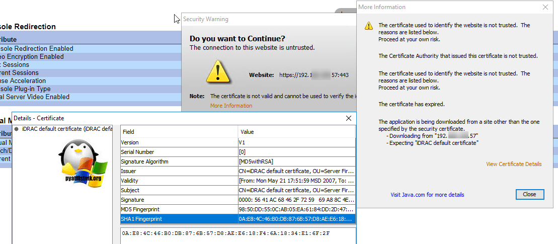 Мой сертификат на лезвии Dell M600, закончился в 2012 году и был выпущен компанией делл, у меня два варианты, забить на это и сделать следующие шаги, либо же сгенерировать csr запрос и отправить его деловцам, чтобы те дали новый сертификат, что геморройно, либо обновить IDRAC, но вся загвоздка в том, что оборудование Dell M600 уже снято с поддержки и порт управления имеет последнюю прошивку.
