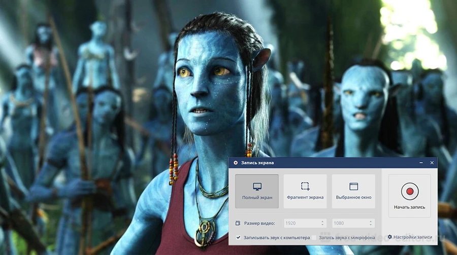 - Настройте параметры снятия. Откройте софт и щелкните по «Записать видео с экрана». Установите полноэкранный режим съемки. Поставьте галочку рядом с «Записать звук с компьютера».