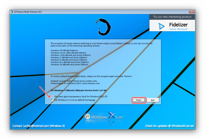Если же вы хотите сильнее изменить свою операционную систему то обязательно сделайте точку восстановления или еще лучше образ системного диска. Затем нужно пропатчить три системных файла и внимательно следовать инструкции приложенной к теме.