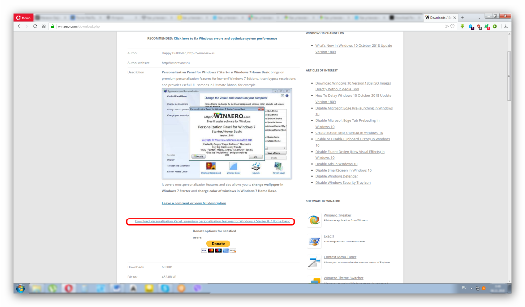 Начинаем со скачивания и инсталляции утилиты Personalization Panel.
