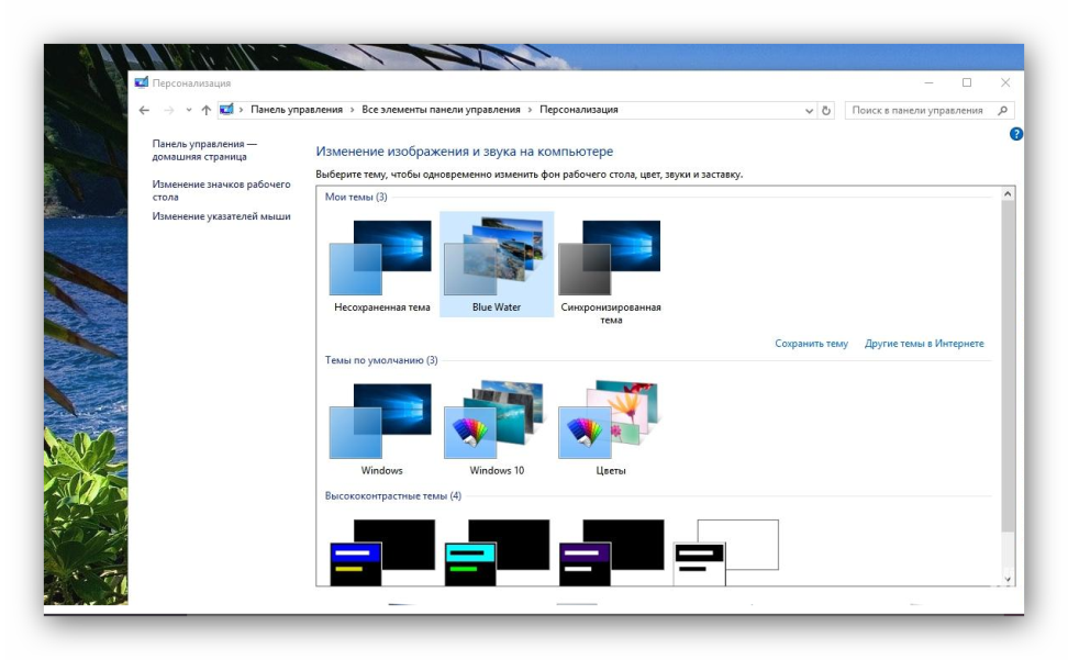 Изначально на Windows 10 было невозможно изменить стандартные и установить новые темы, но после нескольких глобальных обновлений опцию вернули. Зайдя в обновленное меню персонализации, пользователь увидит знакомый ему по семерке способ настройки графического оформления.