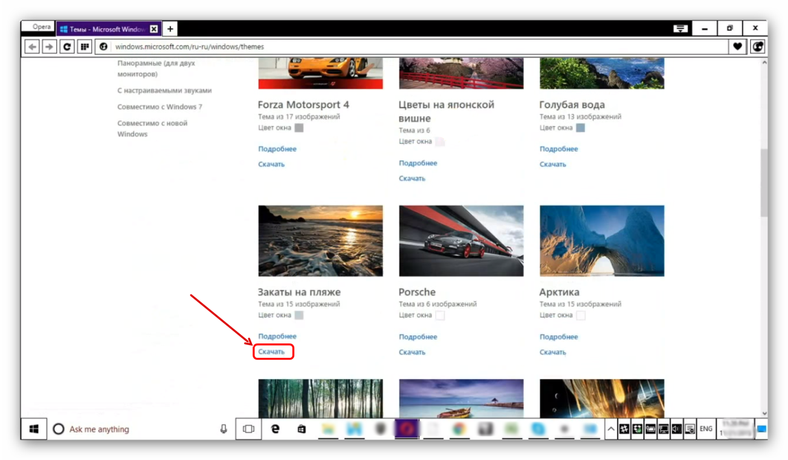 В отличие от предыдущей «семерки» в Windows 8.1 и 10 встроен онлайн-магазин Microsoft для скачивания сертифицированного ПО. В их число входят и темы, которые мы и будем устанавливать.