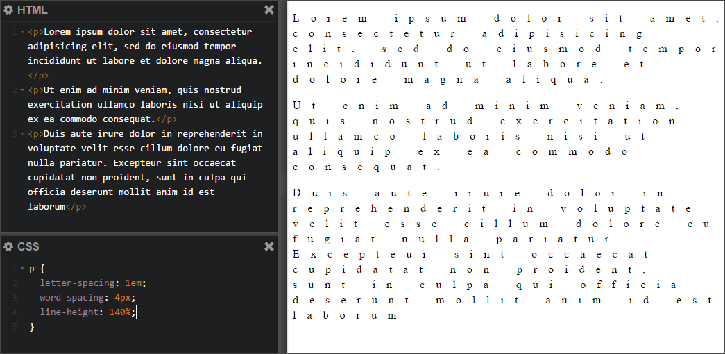 You may already be familiar with and have used the latter two properties, letter-spacing ad word-spacing, in your CSS. In fact we usually consider letter-spacing to be the CSS version of kerning, which isn’t exactly true.