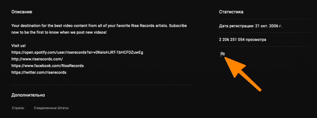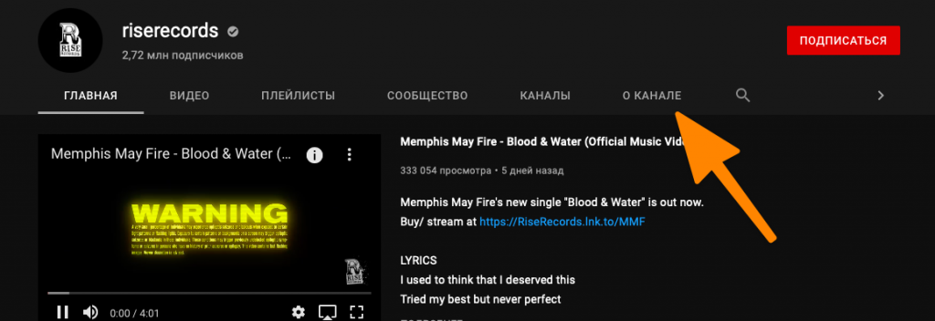 Переходим в профиль этого канала и выбираем вкладку «О канале».
