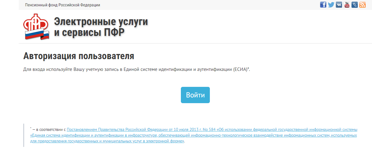 Чтобы осуществить вход в ЛК для работы с сайтом Пенсионного Фонда нужно сделать следующее: