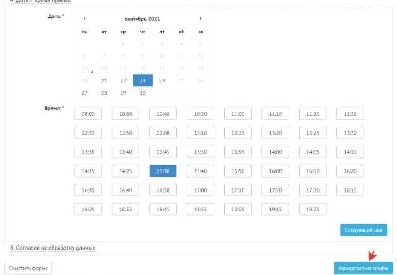 Шаг 5. Выбрать удобное время и отправить заявку.