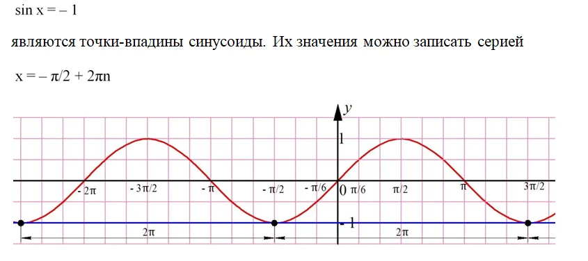 Но поворот эквивалентно повороту . То есть уравнения (6) и (7) эквивалентны. Тогда решение уравнения sin t=−1 запишем в виде: