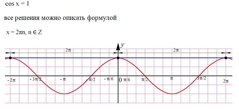 Оказывается, прямая пересекает график в бесконечном количестве точек! Это связано с периодичностью ф-ции у = cosx. Период этой ф-ции равен 2π, то есть
