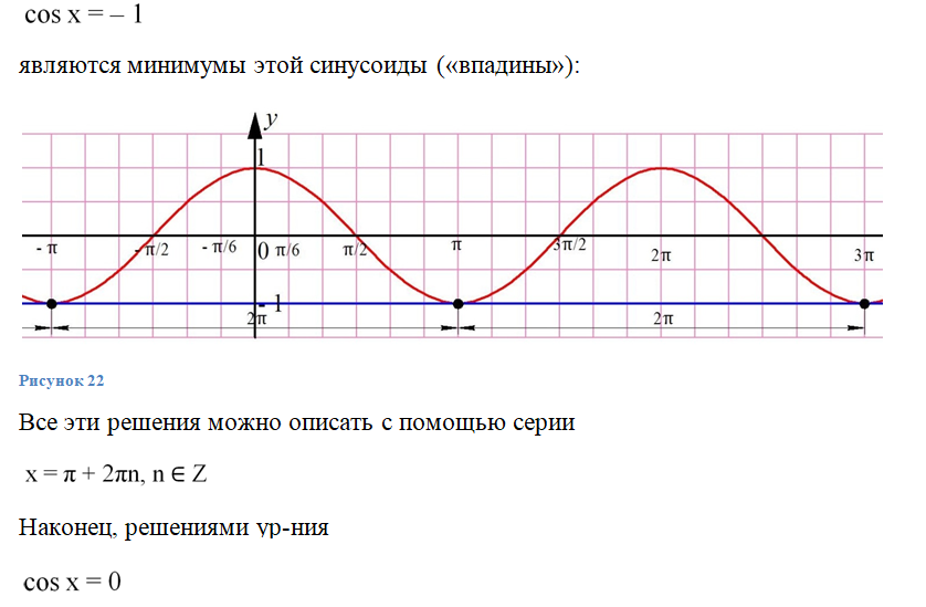 Отдельно отметим, что если правая часть в ур-нии – это число, большее единицы или меньшее (– 1), то ур-ние корней не имеет, ведь область определения косинуса – это отрезок .