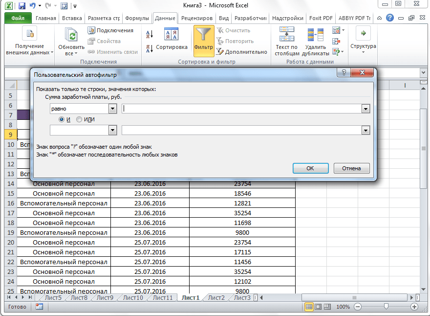 Теперь давайте займемся настройкой пользовательского автофильтра.