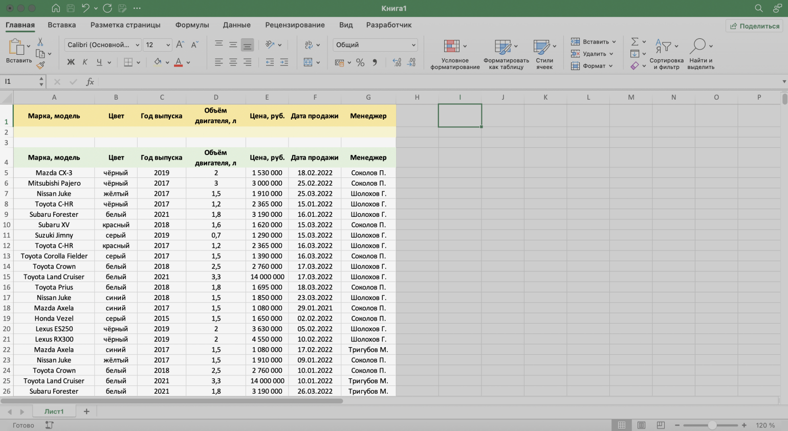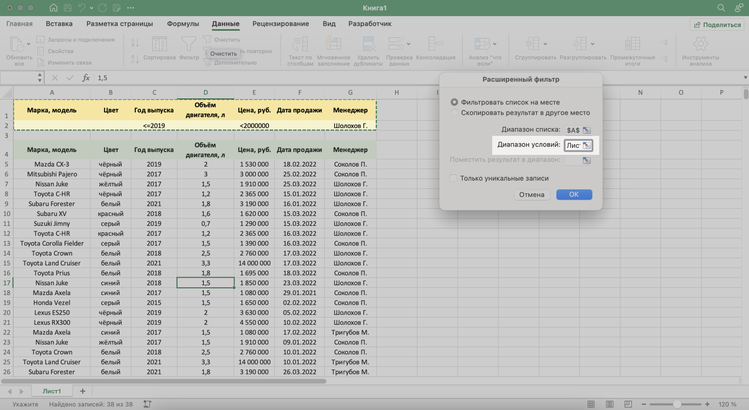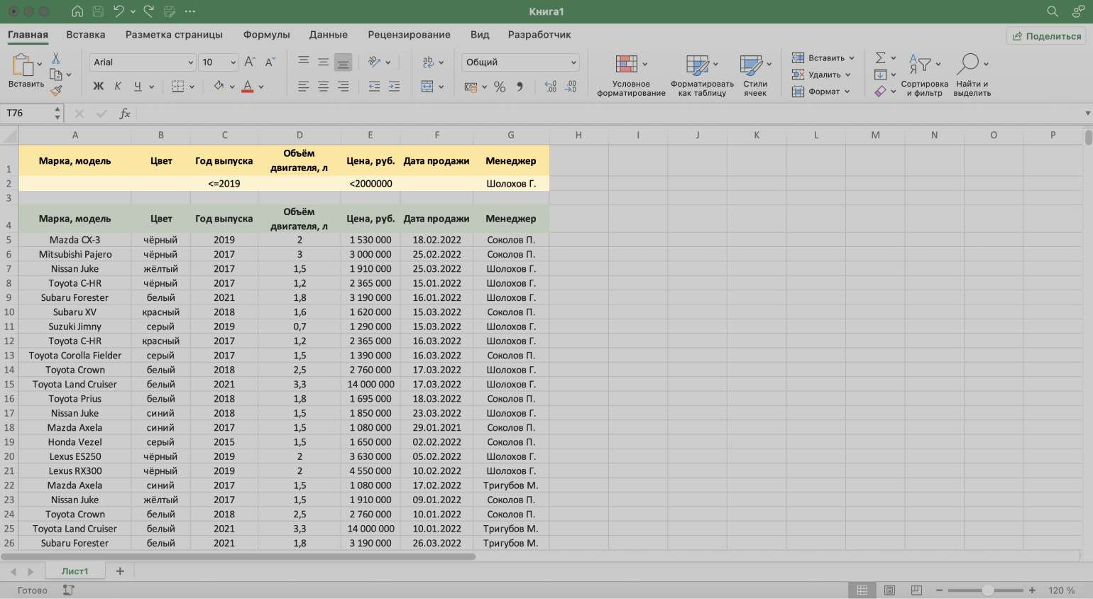 Разберём на примере. Отфильтруем отчётность автосалона по трём критериям: