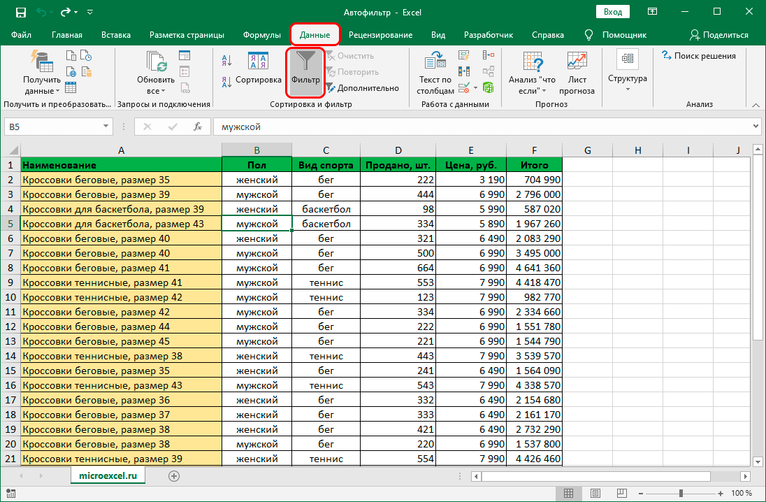 Чтобы начать работать с автофильтром, нужно его включить. Данное действие можно выполнить по-разному: