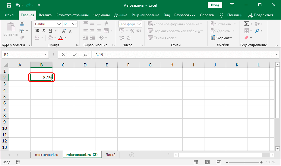 Время от времени бывает так, что во время ввода числа с точками, программка исправляет его на дату. Допустим, мы ввели число 3.19 в вольную ячейку.