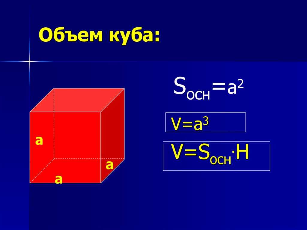 где V — объем куба, a — длина стороны куба.