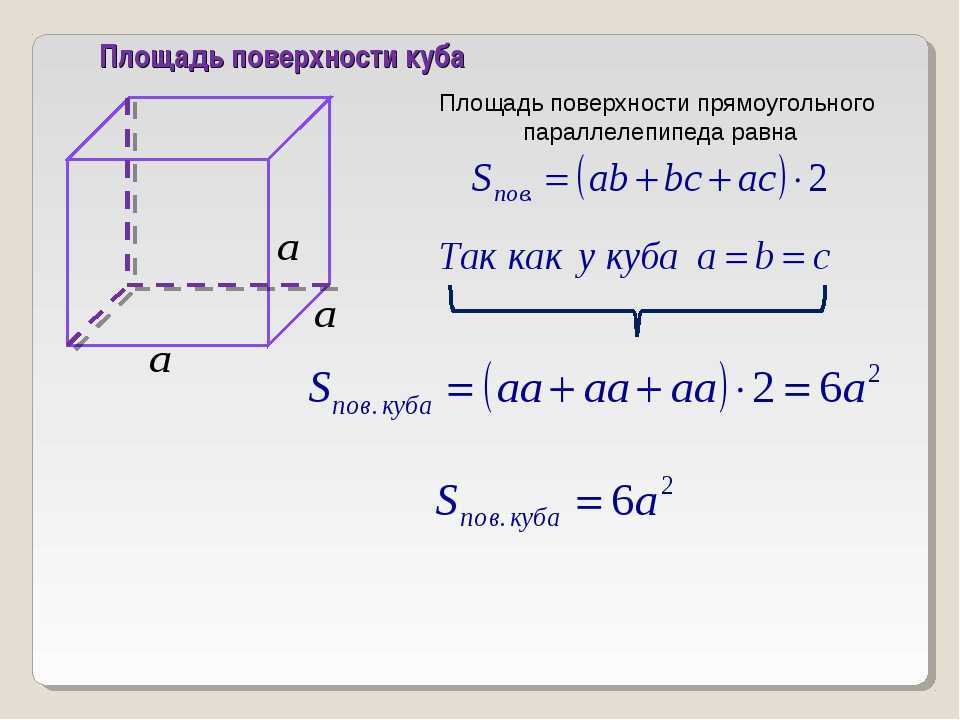 Объем и поверхностная площадь куба