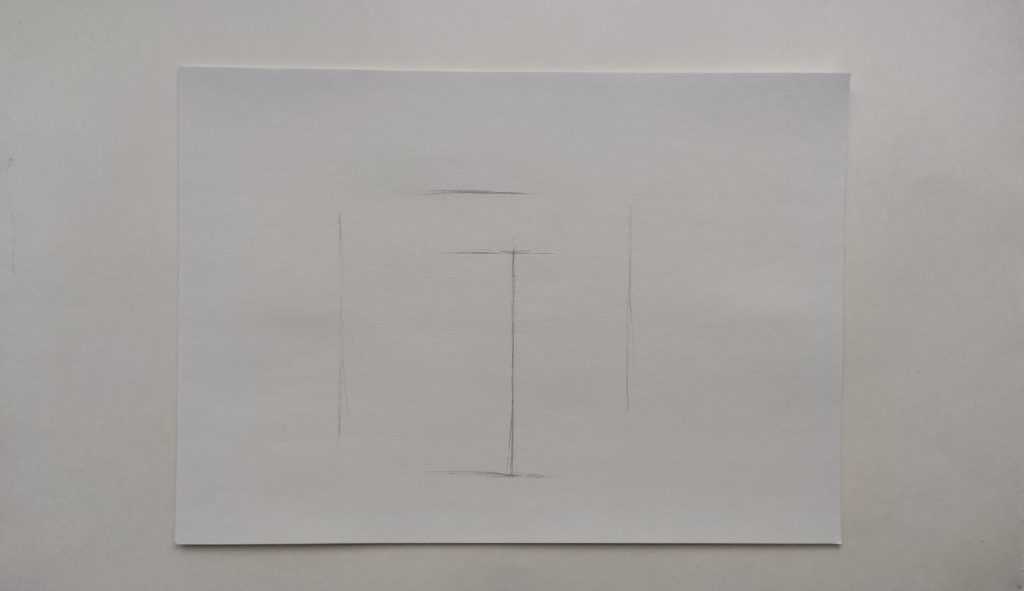 1 этап – намечаем куб, его высоту и ширину