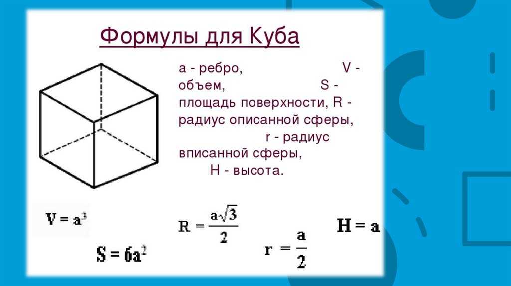 - Формулы для куба