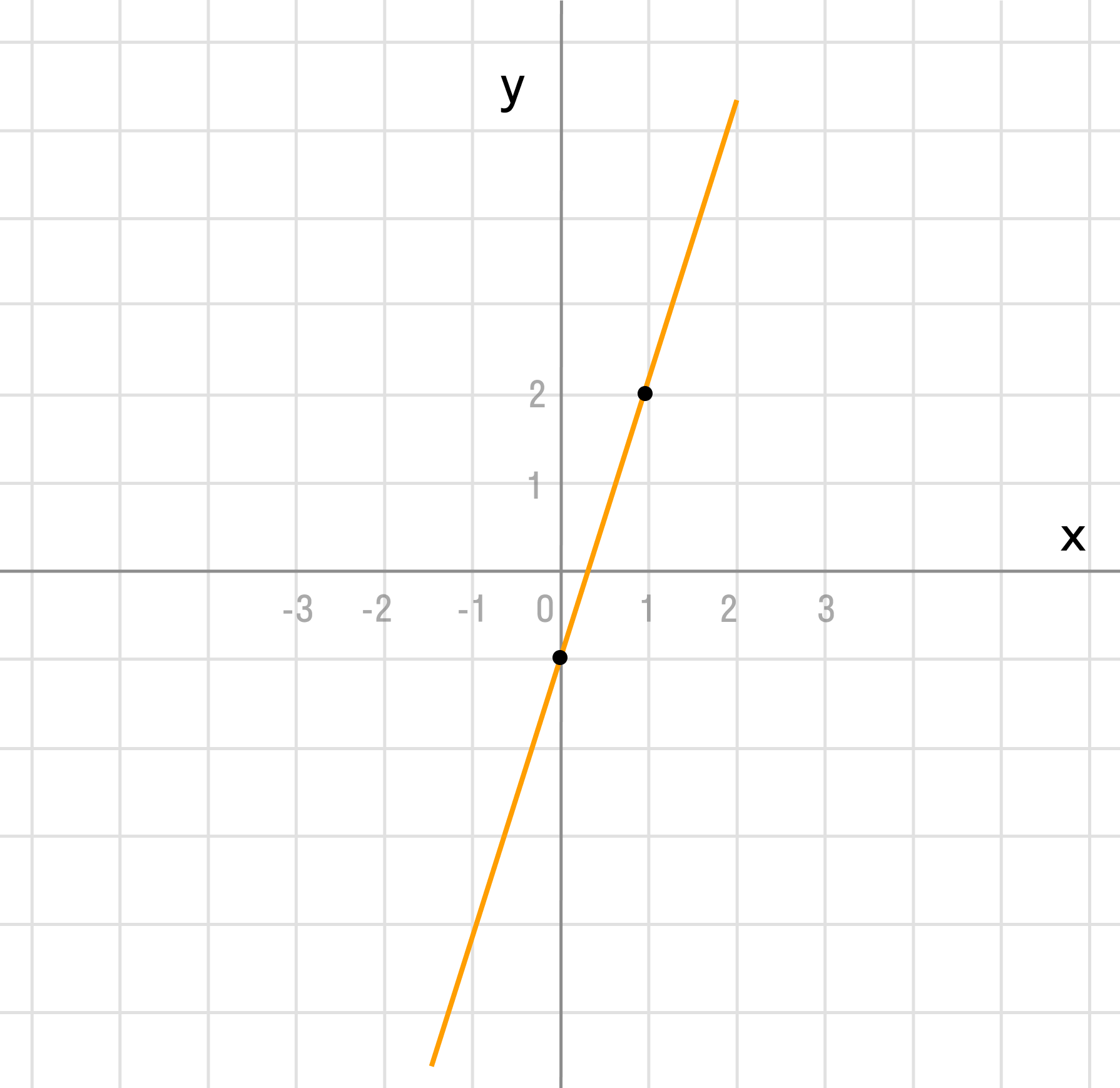 Еще один пример. Пусть график изображает прямую линию, проходящую через точки (0, 2) и (3, 5). Нам нужно найти формулу этой линейной функции.
