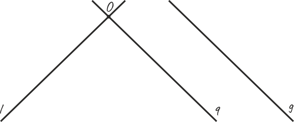 - Для начала начертим дополняющие лучи. Как мы уже разобрались, на прямой нужно поставить точку (называем ее О), она производная и разделяет ее на 2 линии, которые пересечься не могут.