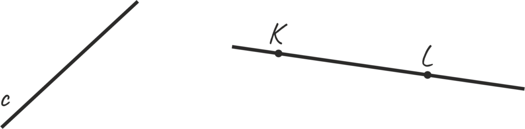 В основном прямую, как и любую другую линию, обозначают при помощи строчной (маленькой) буквы латинского алфавита .