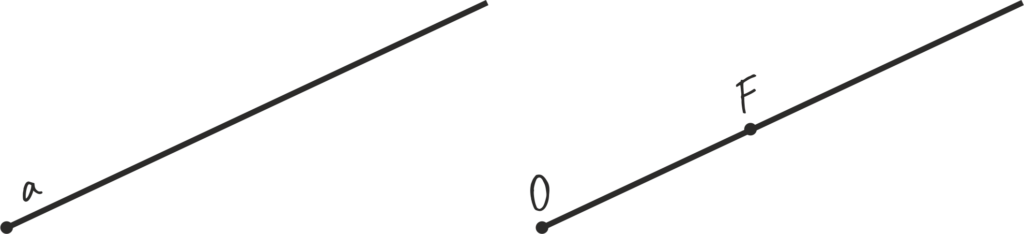 Он состоит из точек, расположенных по одну сторону. Все понятия данных подмножеств можно именовать таким образом. Луч обозначают одной строчной латинской буквой или двумя заглавными, когда одна точка — начало (например, О), а вторая лежит на нем (например, F, К и Е) .