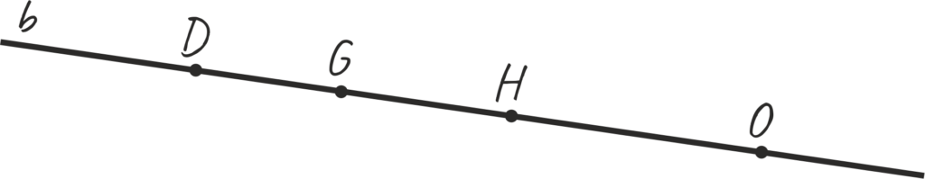 На рисунке 2 видно, что на одной прямой b лежат четыре точки: D , G , H , O . Поэтому данную прямую мы можем назвать любым из этих семи имен: b , DG , DH , DO , GH , GO или HO .