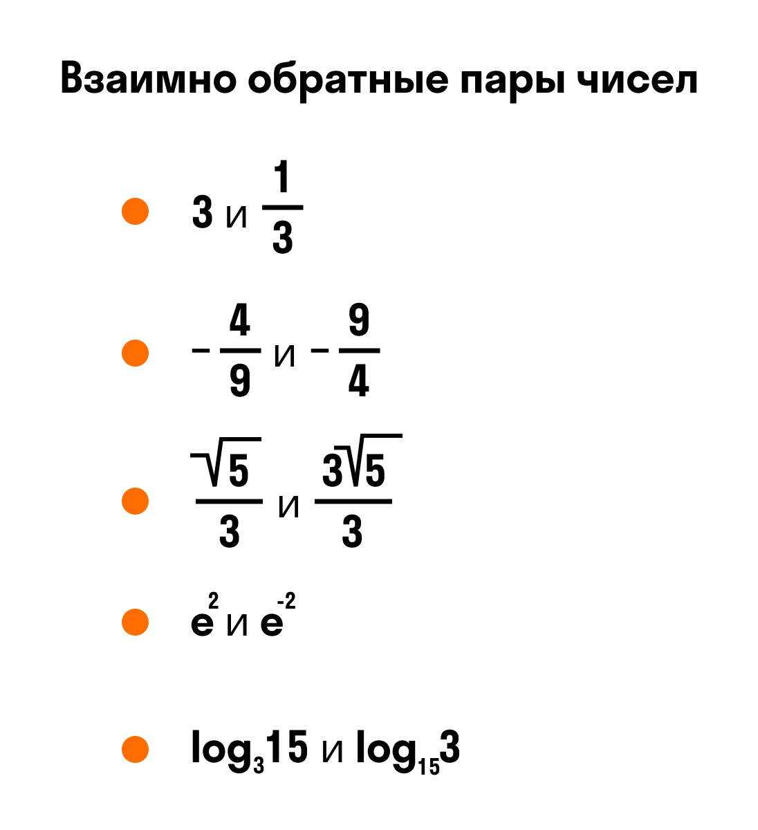 Примеры: 5 и 1/5, −6/7 и −7/6, и