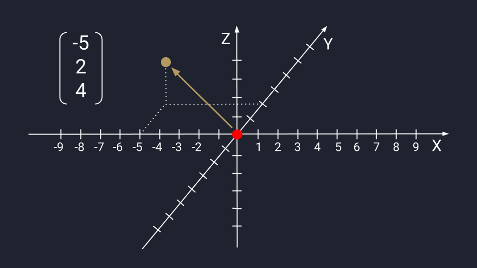 Графическое представление числового вектора в трёх измерениях. Для примера мы взяли координаты −5, 2, 4