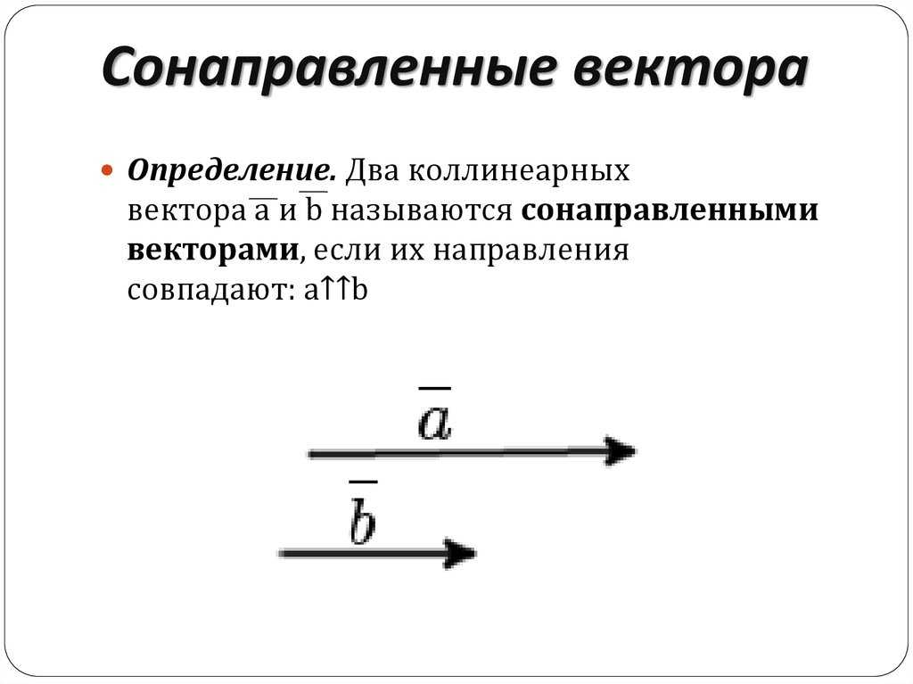 Сонаправленные вектора. Два коллинеарных вектора a и b называются