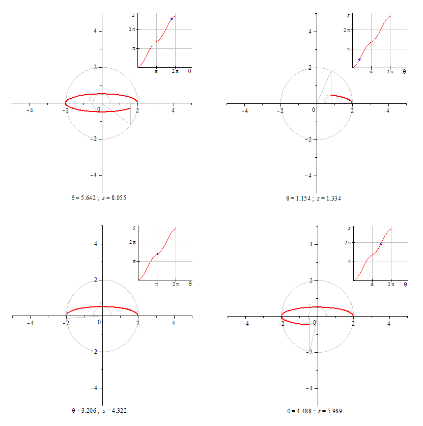 Рис.5. Подсчет длины дуги для a=2, b=0.5, стартовый угол=0, отклонение θ=5.642