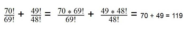 Чтобы выполнять арифметические операции с факториалом заданных чисел, просто придерживайтесь следующих пунктов: