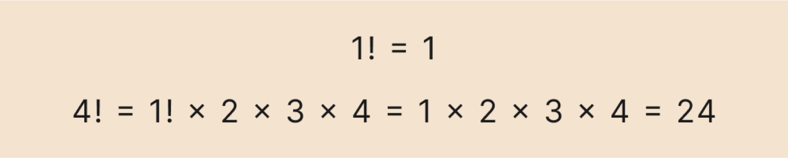 | 4! | 1 × 2 × 3 × 4 | 24 |