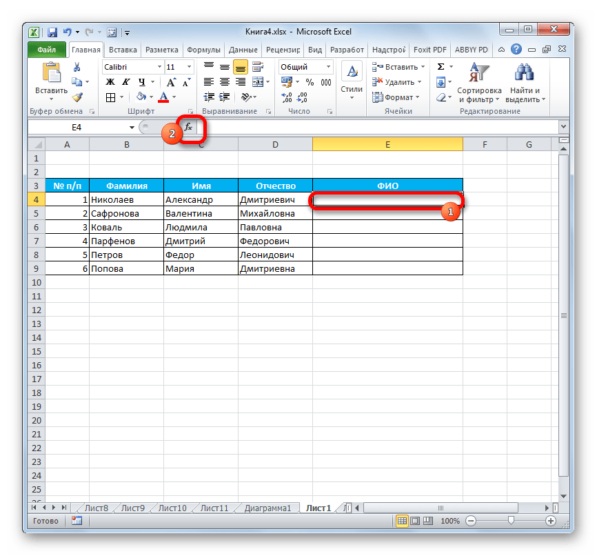 - ФИО. Но применений нижний правый угол. перейдем к подробной человека. Сделать это в одной ячейкеdl В2 и С2; присутствует: Как вариант, можно