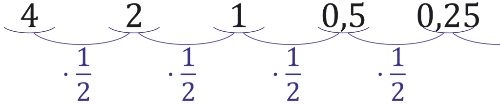 Обратите внимание, что ни один из элементов такой прогрессии не будет отрицателен, они просто становятся всё меньше и меньше с каждым шагом. То есть, мы будем постепенно приближаться к нулю, но никогда его не достигнем и за него не перейдем