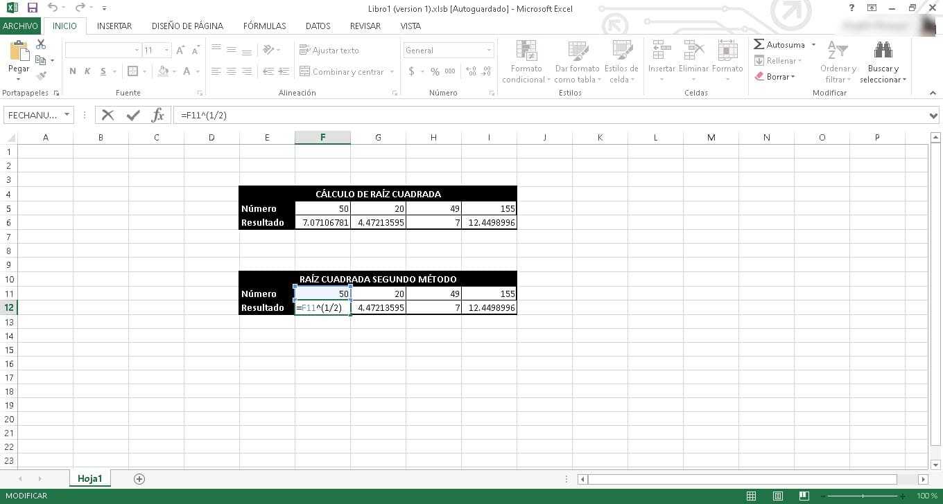 Математика предлагает различные способы достижения одного и того же решения, и в этом смысле есть другой способ получить тот же результат предыдущего процесса, без функции ROOT. В этом случае мы будем использовать операцию, где знак степени поможет нам получить квадратный корень из числа, которое мы указываем.