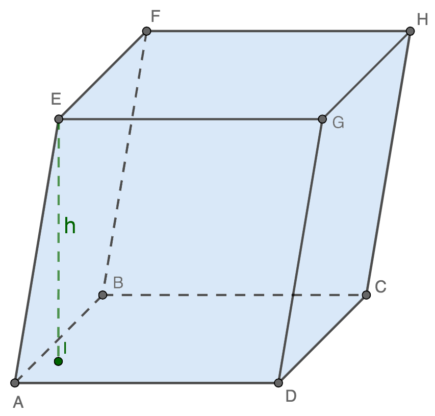 V является объемом параллелепипеда, где a — его длина b — ширина и h — высота соответственно.