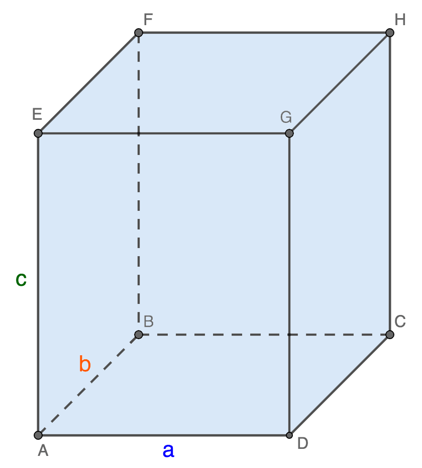 Это означает, что их объёмы также относятся как $1:c$. А так как объёмы параллелепипеда с измерениями $1$, $a$, $b$ равен $ab$, то для объёма $VF$ прямоугольного параллелепипеда с измерениями $a$, $b$, $c$ выполняется соотношение