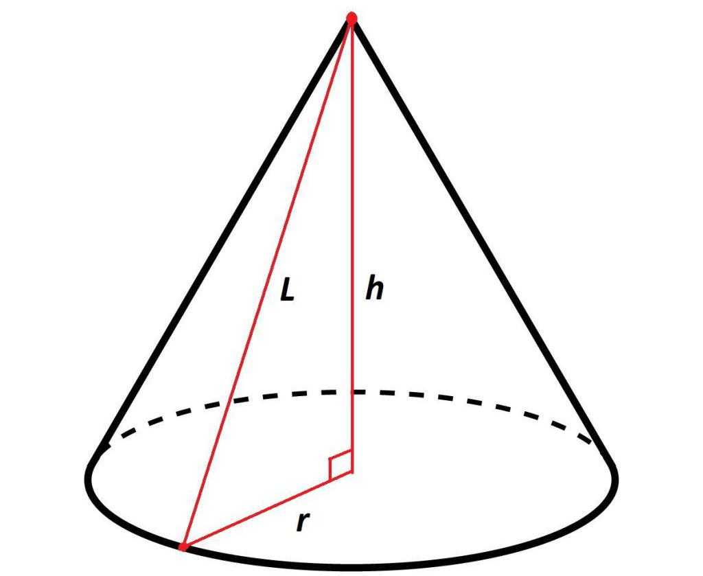 Образующей конуса называется отрезок, который соединяет любую точку границы основания конуса, с его вершиной. Высотой конуса является перпендикуляр, который опущен из вершины к основанию тела.