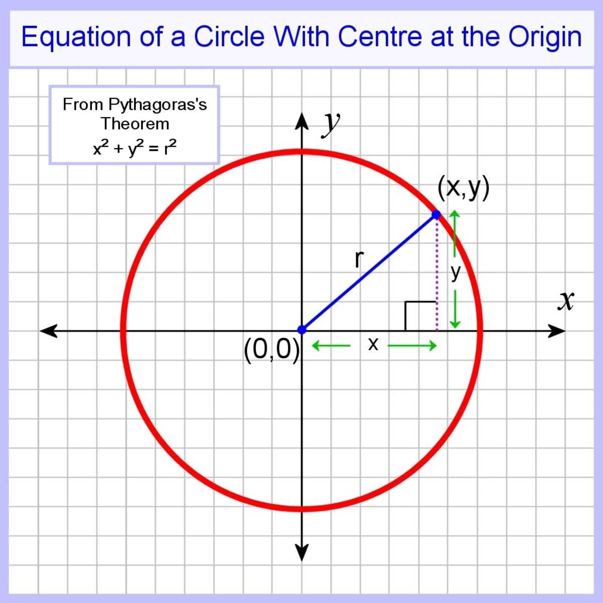 Уравнение круга с центром в начале координат: r² = x² + y².