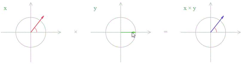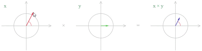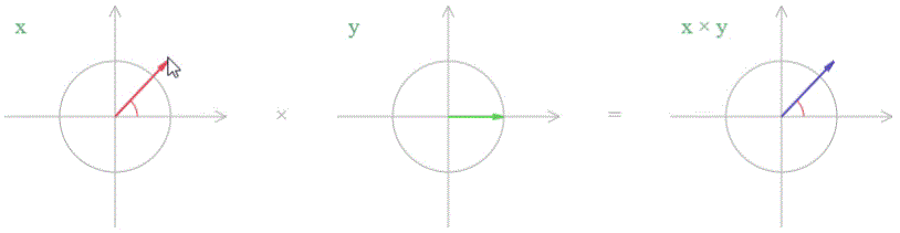 Наоборот, мы можем получить операцию поворота без растяжения, если умножим число X на комплексное число Y единичной длины. Тогда число X просто поворачивается на угол, равный аргументу числа Y.