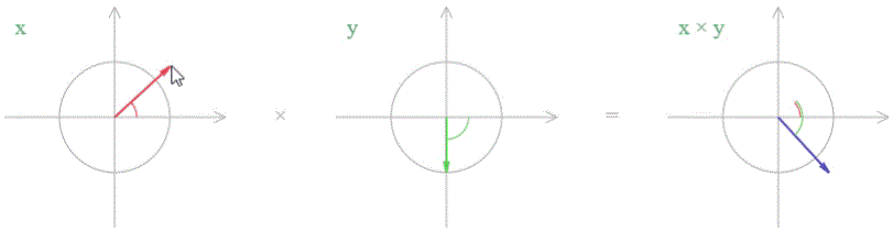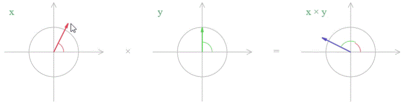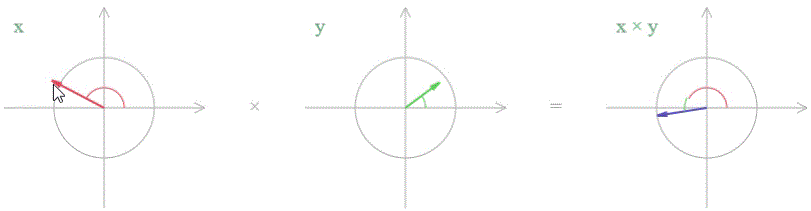 Это означает, что при перемножении двух чисел их аргументы (углы) складываются, а длина умножается.