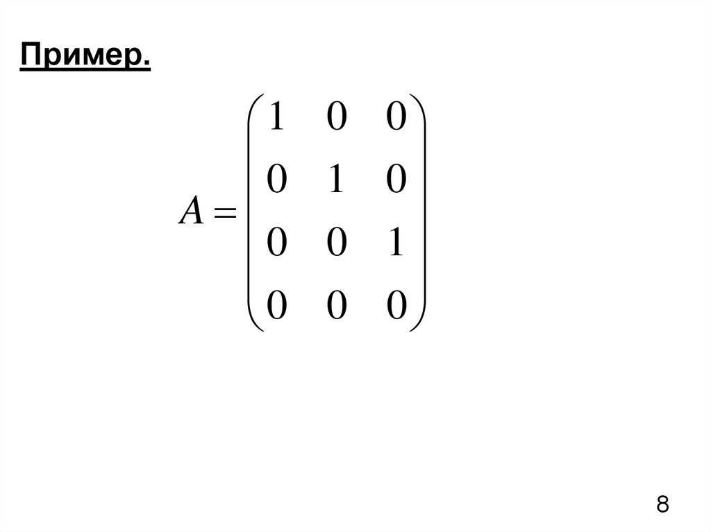 Рангом матрицы называется порядок базисной подматрицы или, иначе, самый большой порядок, для которого существуют невырожденные подматрицы. Ранг нулевой матрицы по определению считают нулем.