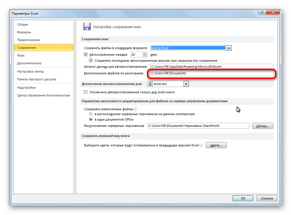 Но в разных версиях Windows или Excel путь может отличаться. Чтобы узнать, куда сохраняет Excel в автоматическом режиме, нужно зайти в настройки и убедиться в правильности пути. Как описано выше.
