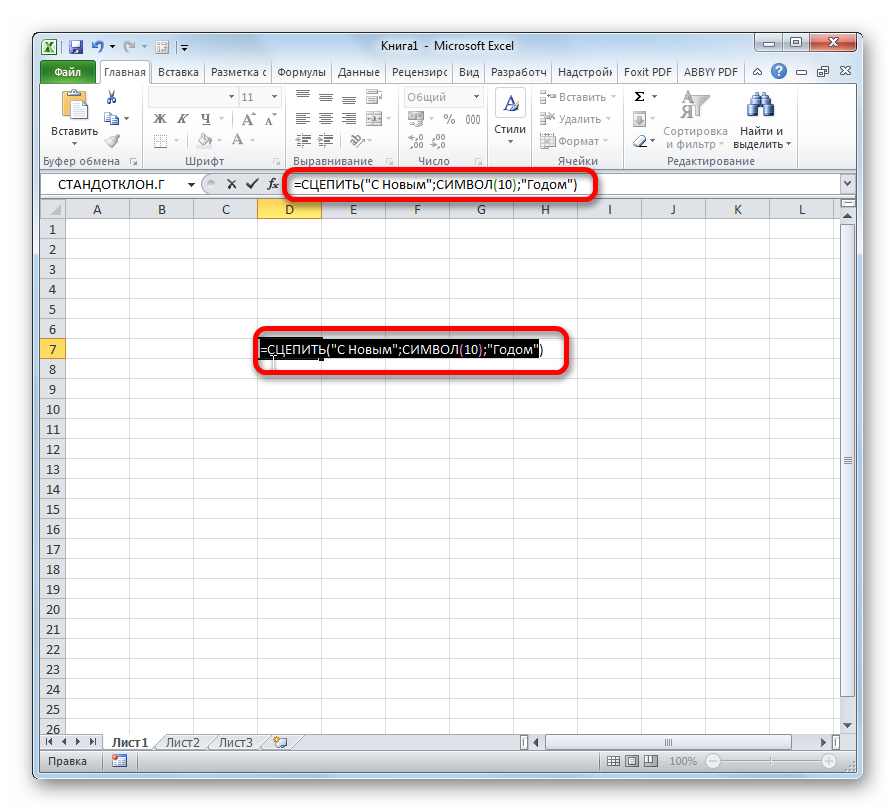 Также можно осуществить перенос внутри ячейки при помощи формул. Этот вариант особенно актуален в том случае, если содержимое выводится с помощью функций, но его можно применять и в обычных случаях.