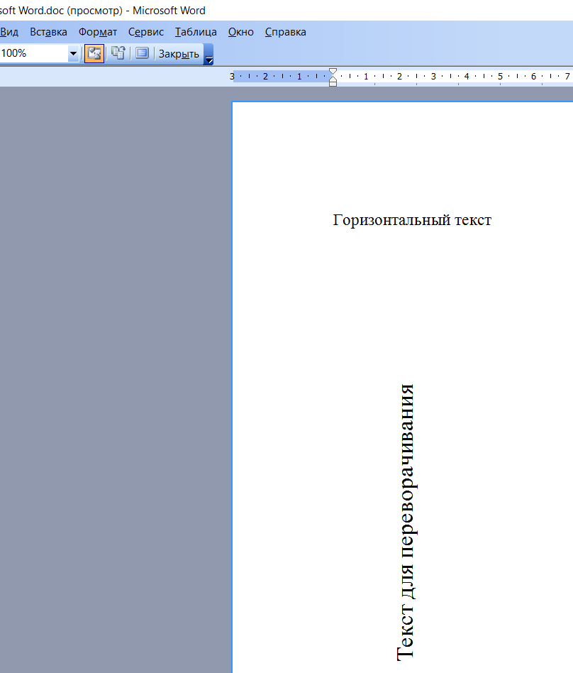 «, после чего наблюдаете перевернутый текст в ворде 2007-2010.
